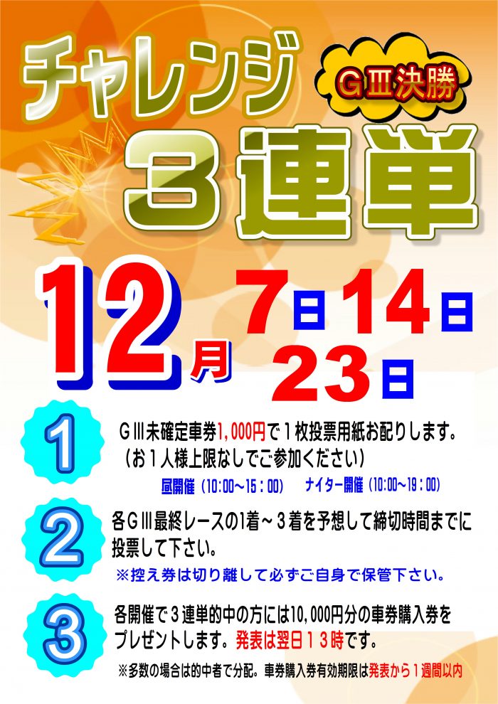 チャレンジ3連単! 25/12/07 最近の投稿 チャレンジ3連単! 本日のお笑いライブ開催! LINE登録者限定!10ポイントデー サービス終了のお知らせ 世界スポーツ「競輪」のブランド新CM アーカイブ 2025年12月 2025年10月 2025年4月 2025年3月 2025年1月 2022年11月 カテゴリー NEWS&TOPICS イベント情報 未分類
