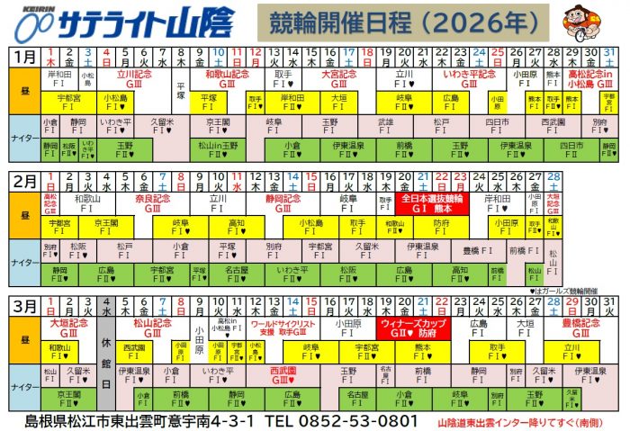 2026年1月~最大4場発売へ拡大しました! 26/01/07 これまでの最大3場発売から2026年1月より最大4場発売へ拡大いたしました!(昼2場・ナイター2場)これまで以上に より良いサービスを提供するために、日々改善を重ねてまいります。宜しくお願いいたします。 最近の投稿 2026年1月~最大4場発売へ拡大しました! 「WINNER4」ナイター開催人気イベント! 1月11日(日)毎月第2日曜日は「ひがいも輪五郎市」! チャレンジ3連単 サービス終了のお知らせ アーカイブ 2026年1月 2025年10月 2025年4月 2025年3月 2025年1月 2022年11月 カテゴリー NEWS&TOPICS イベント情報 未分類